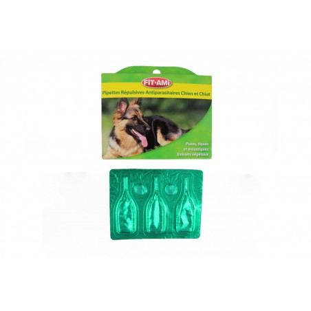 PIPETTE INSECTIFUGE POUR CHIEN X 3 - PHYTOREPULSIVE - PROTEGE DES PUCES ET TIQUES