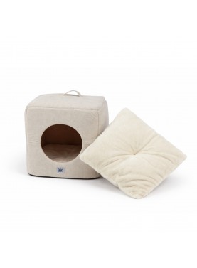 Découvrez le cube refuge "Signature" de couleur beige, l'expression du confort absolu pour votre animal de compagnie. Disponible en 3 tailles, chaque détail de ce couchage incarne l'excellence : un tissu raffiné, une surface d'une douceur exquise et une finition soignée. Offrez à votre compagnon un havre de paix où se blottir et se sentir en sécurité. Dimension : 40X40X40CM Composition : 100% POLYESTER