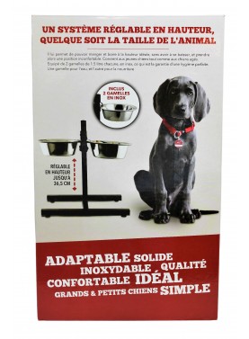 SUPPORT REGLABLE HAUTEUR AVEC 2 GAMELLES 21CMS