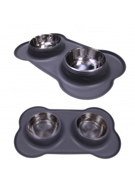 TAPIS SILICONE ANTIDERAPANT GRIS-2 GAMELLES EN INOX
