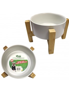 GAMELLE CERAMIQUE BLANCHE AVEC SUPPORT BOIS